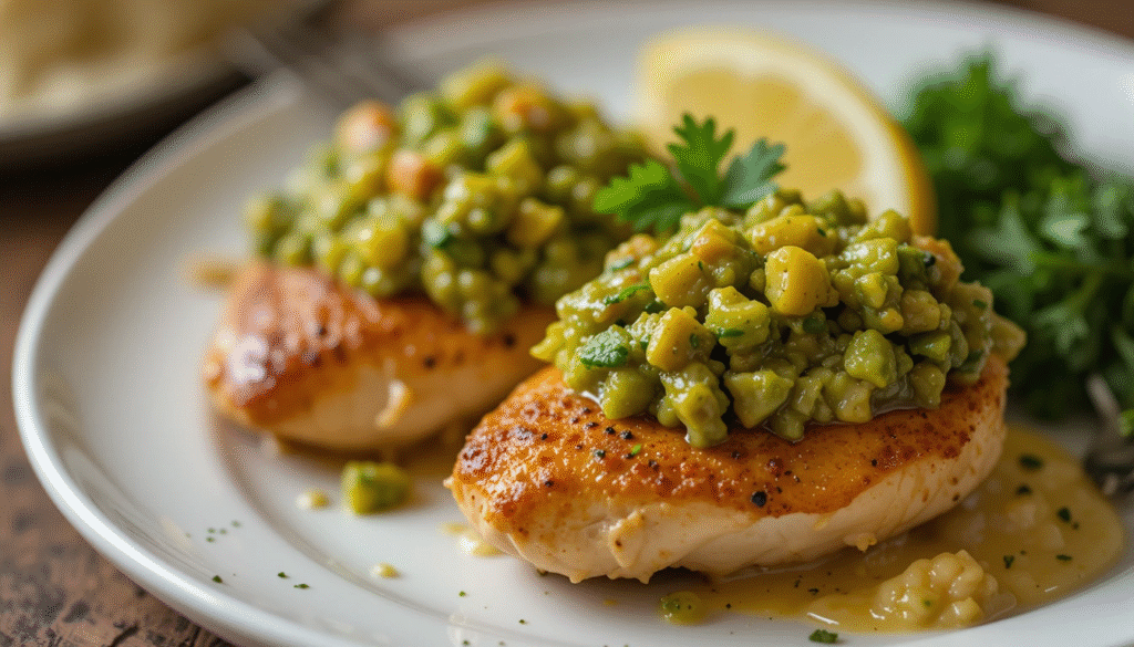 - Top It Off: Arrange the chicken on plates. Generously spoon the fresh, vibrant avocado tapenade right over the top.